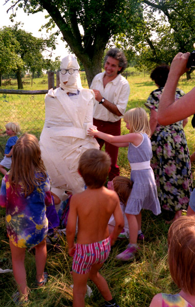 Ein originelles Spiel mit Klopapier. Der langjährige Kinderladenvater (und Exbetreuer) Klaus findet selber Spaß daran. Eingewickelt wird der Praktikant Lars (1994):