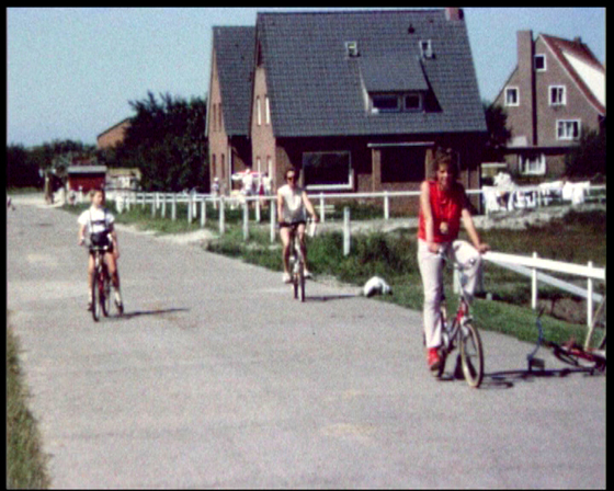 Hier bei einem Fahrrad-Ausflug um die Insel Langeoog. Als Stammgäste hatte die Familie Lenk einige Fahrräder bei den Vermietern deponiert, die sie jedes Jahr im Urlaub benutzten. Im Vordergrund sind die drei Brüder Barbaras: Ralf, Volker und Friedrich.