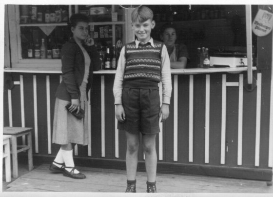 links Frau Kratz aus Niederohmen (Tochter von Wochenmarkt-Metzger Kratz, der uns die besten Würstchen worldwide lieferte). Frau Kratz sorgte für diese Wurstbudenfotos. Dieses stammt wahrscheinlich von 1951. Mutti’s Sohn ist hier so um die 10 Jahre alt.